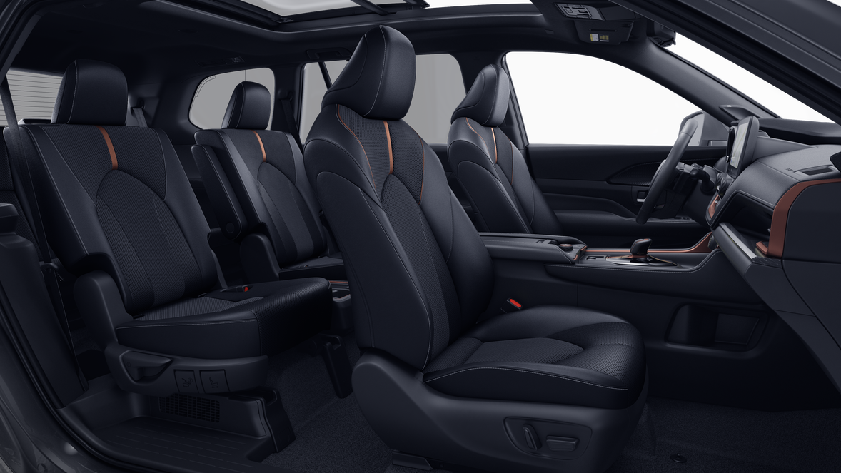 - fold-down third-row seats with sliding headrests and recline function~Interior@Digital Key capability — Digital Key enables smartphone to be used instead of a physical key (Remote Connect subscription required)~Interior@Power door locks with shift-linked automatic lock/unlock feature~Interior@Manual second-row retractable rear window sunshades~Interior@Qi-compatible wireless smartphone charging with charge indicator light~Interior@Two 120V outlets (1500W shared) located on the bottom rear of center console and in the luggage area~Interior@Seven USB-C ports (one media port and six charging ports) and two 12V outlets ~Interior@Soft-touch roll-top center console with removable utility tray~Interior@13 cup and bottle holders~Interior@Power windows with auto up/down in all positions and jam protection