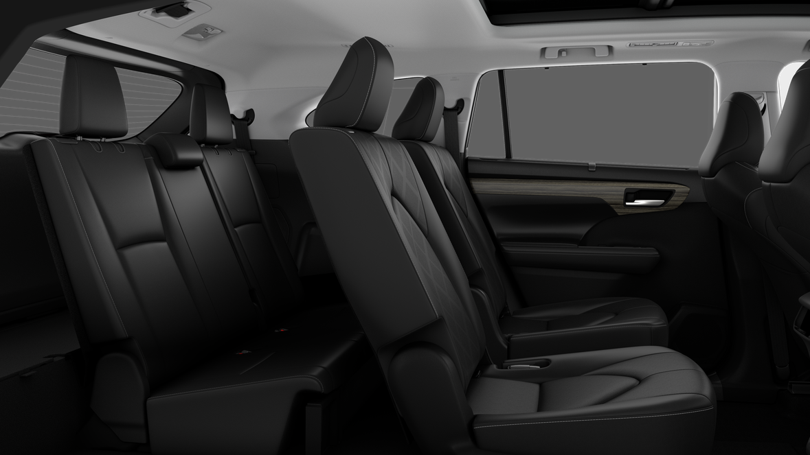 - fold-flat third-row seats with sliding headrests and recline function~Interior@Leather-trimmed front- and second-row seats; heated and ventilated front seats; heated second-row seats; 10-way power-adjustable driver's seat including power lumbar support; 8-way power-adjustable front passenger seat; seat memory function~Interior@Illuminated metal front doorsill~Interior@Ambient interior lighting~Interior@Digital rearview mirror with HomeLink® universal garage door opener~Interior@Chrome-plated interior door handles~Interior@Ornamental dash trim and faux wood door trim~Interior@Qi-compatible wireless charging with charge indicator light~Interior@Dual sun visors with sliding function and illuminated vanity mirrors~Interior@Second-row sunshades~Interior@Overhead console with conversation mirror