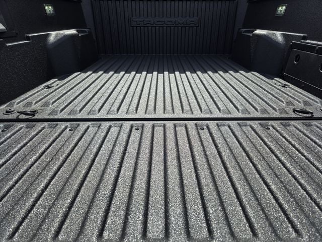 - auto on/off feature and manual leveling adjustment~Exterior@LED fog lights~Exterior@Deck rail system with four adjustable tie-down cleats and fixed cargo bed tie-down points~Exterior@5-ft. bed~Exterior@Lightweight "TACOMA" stamped tailgate with damper [tailgate_weight]~Interior@Fabric-trimmed seats; 6-way manually adjustable driver and front passenger seats with 2-way power-adjustable lumbar support on driver's seat only~Interior@Leather-trimmed manual tilt/telescopic steering wheel with phone