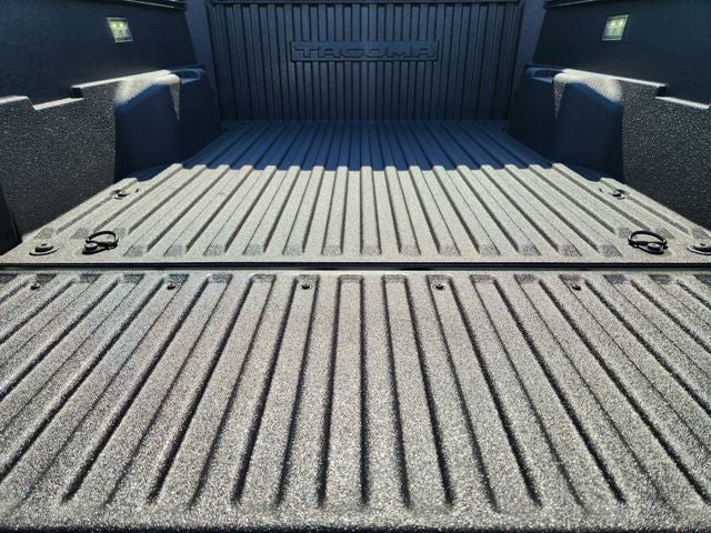 - auto on/off feature and manual leveling adjustment~Exterior@LED fog lights~Exterior@Deck rail system with four adjustable tie-down cleats and fixed cargo bed tie-down points~Exterior@5-ft. bed~Exterior@Lightweight "TACOMA" stamped tailgate [tailgate_weight]~Interior@Fabric-trimmed seats; 6-way manually adjustable driver and front passenger seats with 2-way power-adjustable lumbar support on driver's seat only~Interior@Polyurethane manual tilt/telescopic steering wheel with phone