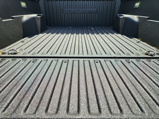 - auto on/off feature and manual leveling adjustment~Exterior@LED fog lights~Exterior@Deck rail system with four adjustable tie-down cleats and fixed cargo bed tie-down points~Exterior@5-ft. bed~Exterior@Lightweight "TACOMA" stamped tailgate with damper [tailgate_weight]~Interior@Fabric-trimmed seats; 6-way manually adjustable driver and front passenger seats with 2-way power-adjustable lumbar support on driver's seat only~Interior@Leather-trimmed manual tilt/telescopic steering wheel with phone
