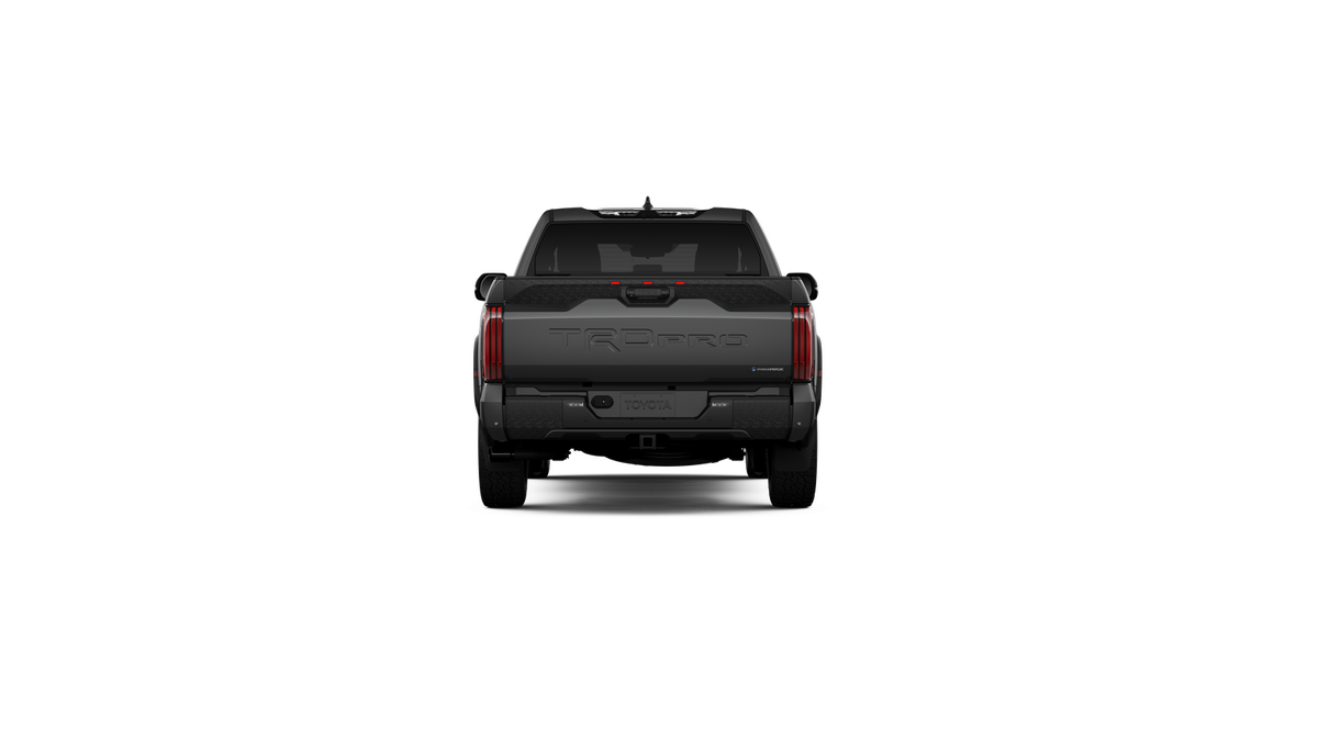 - except on Midnight Black Metallic and Blueprint~Exterior@i-FORCE MAX tailgate badge~Exterior@"TRD PRO" hood badge; black door handles; black window molding and mirror caps; black technical-camo-grained tailgate spoiler and overfenders with marker lights~Exterior@"i-FORCE MAX" hood badge~Exterior@TRD Pro black dual exhaust tips~Exterior@Front and rear mudguards~Interior@Thin-bezel auto-dimming rearview mirror with HomeLink® [homelink] universal transceiver~Interior@Smart Key System with Push Button Start; remote keyless entry with lock