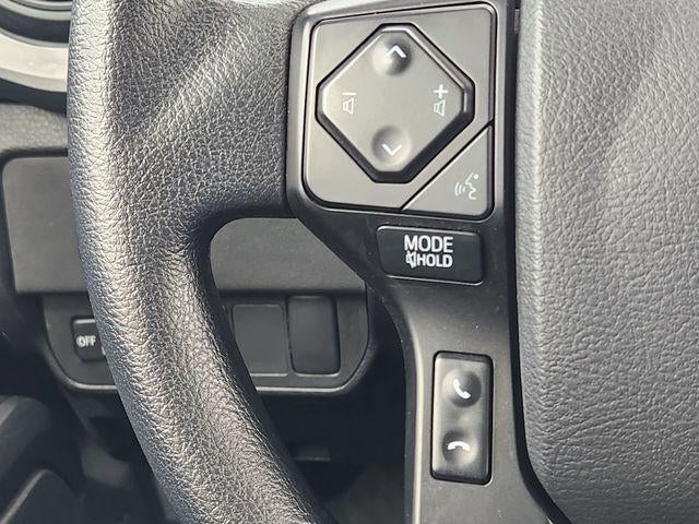 4WD, 16 Styled Steel Wheels, 6 Speakers, ABS brakes, Air Conditioning, AM/FM radio: SiriusXM, Anti-whiplash front head restraints, Apple CarPlay/Android Auto, Auto High-beam Headlights, Automatic temperature control, Black Chrome Exhaust System (TMS), Brake assist, Bumpers: body-color, Cast Aluminum Running Boards (TMS), Driver door bin, Dual front impact airbags, Dual front side impact airbags, Electronic Stability Control, Emergency communication system: Safety Connect (1-year trial), Exterior Parking Camera Rear, Fabric Seat Trim, Front anti-roll bar, Front Bucket Seats, Front Center Armrest, Front dual zone A/C, Front reading lights, Front Seats, Front wheel independent suspension, Heated door mirrors, Illuminated entry, Knee airbag, Low tire pressure warning, Occupant sensing airbag, Outside temperature display, Overhead airbag, Overhead console, Passenger door bin, Power door mirrors, Power steering, Power windows, Radio: Audio, Rear step bumper, Soft Tonneau Cover (TMS), Speed control, Speed-sensing steering, Split folding rear seat, Steering wheel mounted audio controls, Tachometer, Telescoping steering wheel, Tilt steering wheel, Traction control, TRD Shift Knob (TMS).